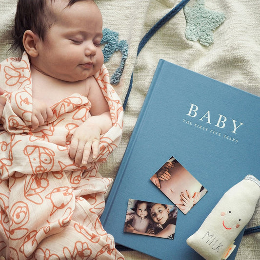 A gorgeous first five years baby journal, classic linen design, available in pink, blue and...