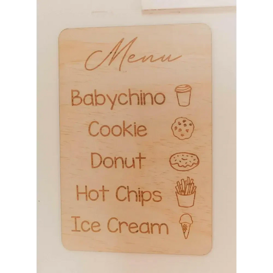 Our kids Menu is a cute addition to any kid's playroom, cubby house or cafe....