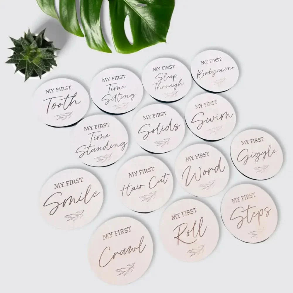 Capture every special moment with our Wooden "My Firsts" Baby Milestone Discs. Thoughtfully designed with a fresh, modern twist, this beautiful 14-piece set helps you celebrate and photograph all those unforgettable baby milestones — from first smiles to first steps.
