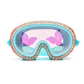 You will be shining brighter then the seas in Blue Sushi Sea Mask. This large frame swim mask will have you one with the tides featuring glitter shimmer through its frame, mermaid tails printed on the lens and if this is deep-sea perfection already Blue Sushi also has a mermaid tail embossed strap.