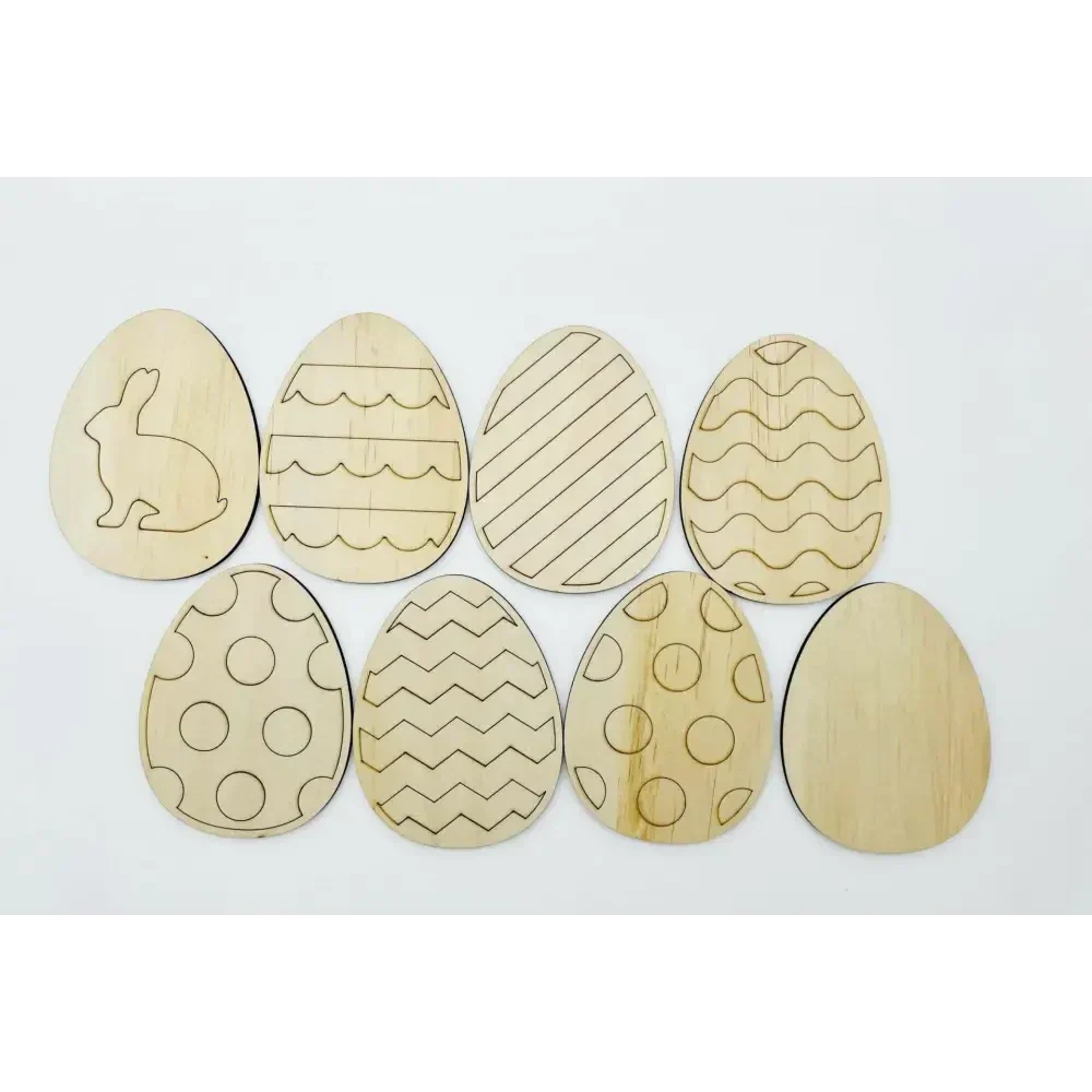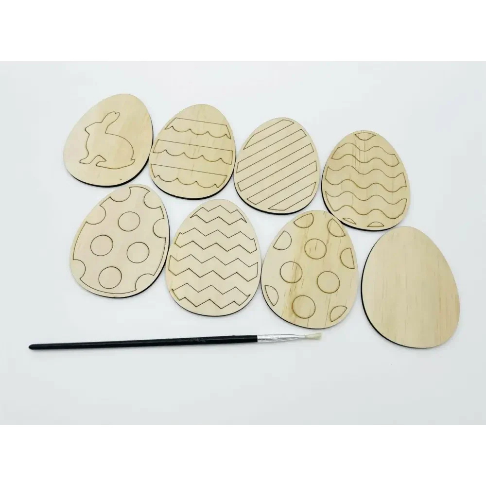 Our new Decorate Your Own Easter Egg Kits are perfect for your Easter celebrations. It's a fun activity for every child. Each set includes 8 wooden Easter eggs-each with a different fun pattern to paint. Each egg measures approximately 9cm tall and are 3mm thick