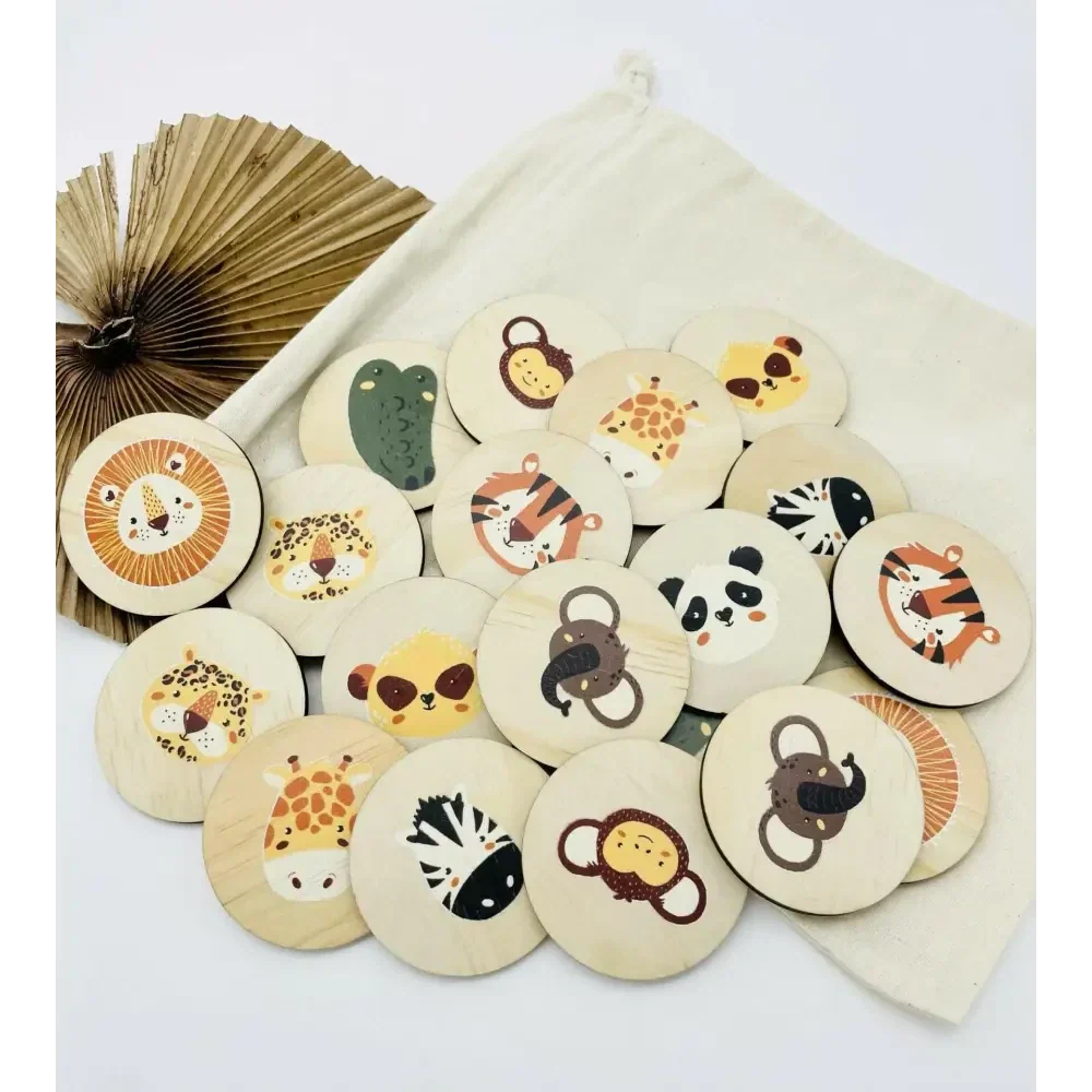 What better way to help your child learn then with this cute jungle animal matching game! Featuring uv printed jungle animals. This beautiful set is a fresh modern twist on the popular children’s game.