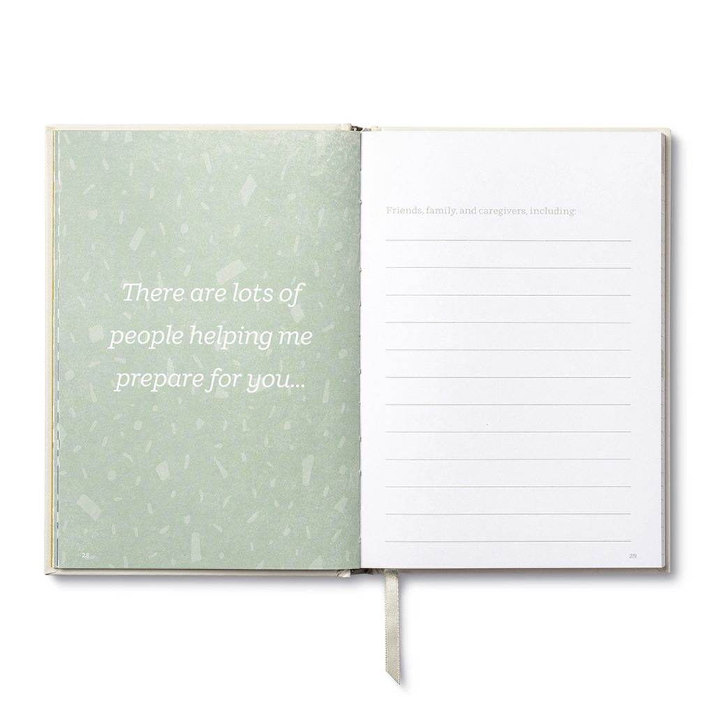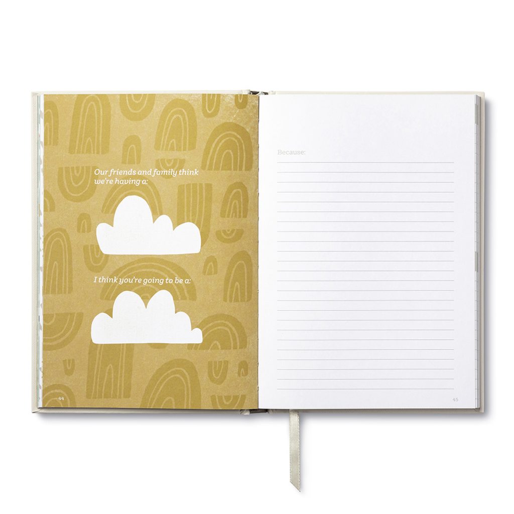Waiting For You pregnancy journal offers reflective prompts that invite you to record treasured milestones and memories — from hearing heartbeats and creating birth plans to choosing nicknames and experiencing cravings.