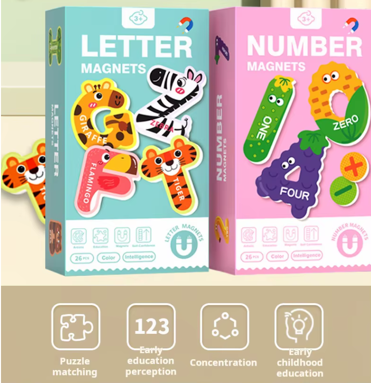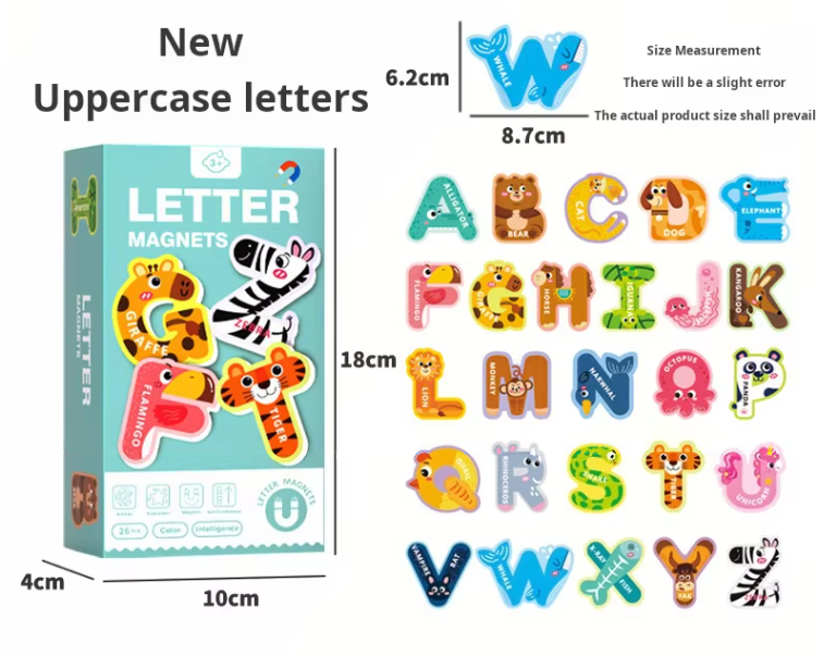 A large magnetic letter, number, animal, and vehicle puzzle is a fantastic tool for learning through play! It helps children develop fine motor skills as they grasp and place the pieces, while also reinforcing essential concepts like the alphabet, counting, and animal recognition. The colorful, engaging design captures attention and makes learning fun. As kids match letters, numbers, animals, and vehicles, they improve hand-eye coordination and spatial awareness. Plus, the magnet feature adds an interactive element, making it easy for kids to move pieces around and practice independently—boosting both their confidence and cognitive development!