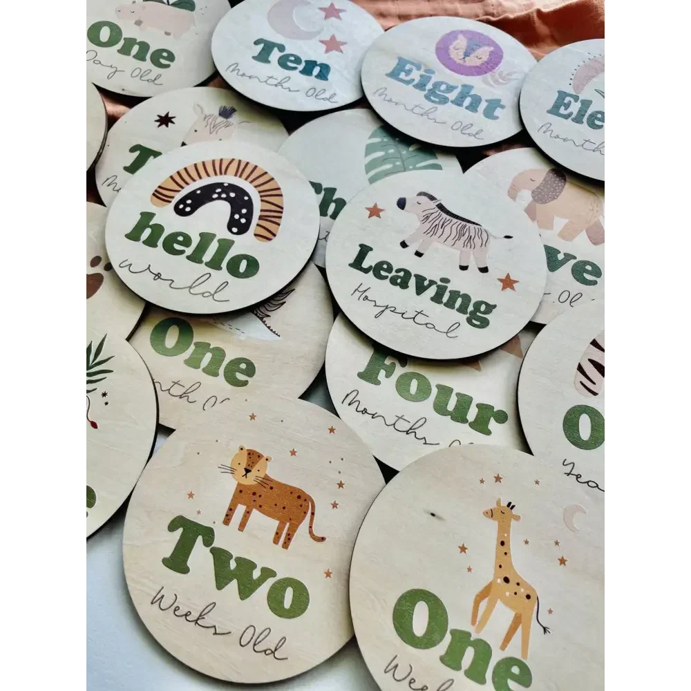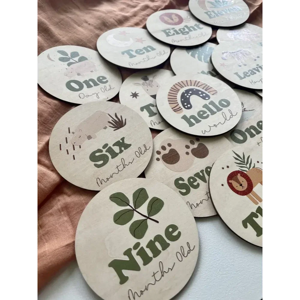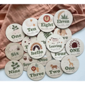 This beautiful set is a fresh twist on the popular wooden milestone discs. They have a beautiful printed design that looks great in photos. They capture those first few weeks and then month-by-month until they reach the big 1st birthday milestone!