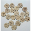 Each wooden circle swing tag measures 6.5cm in diameter and is 3mm thick plywood.
