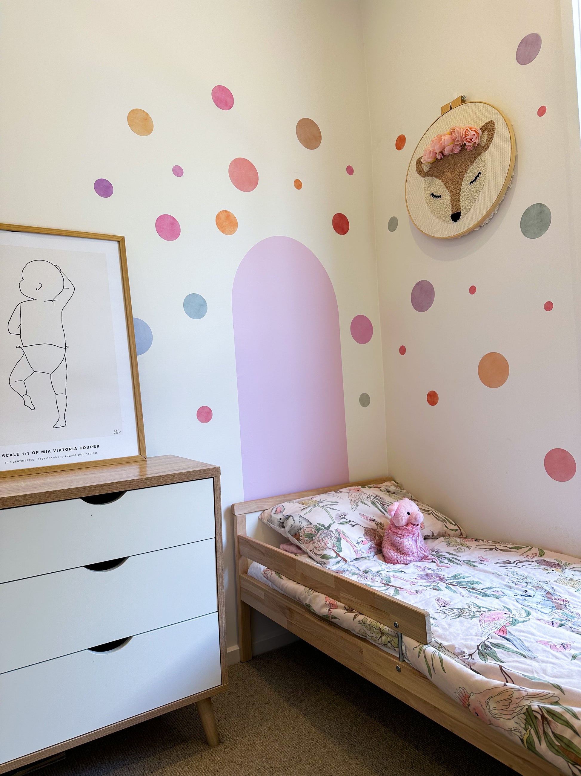 Our wall decals are designed by illustrator Mads Francis and printed in Australia using eco-friendly, non-toxic materials so you can place them in your kid's room without worry. We print on a non-vinyl, self-adhesive, super easy to apply, and completely removable material, so whether you rent or own, you can decorate without the stress of causing any damage to your precious walls!